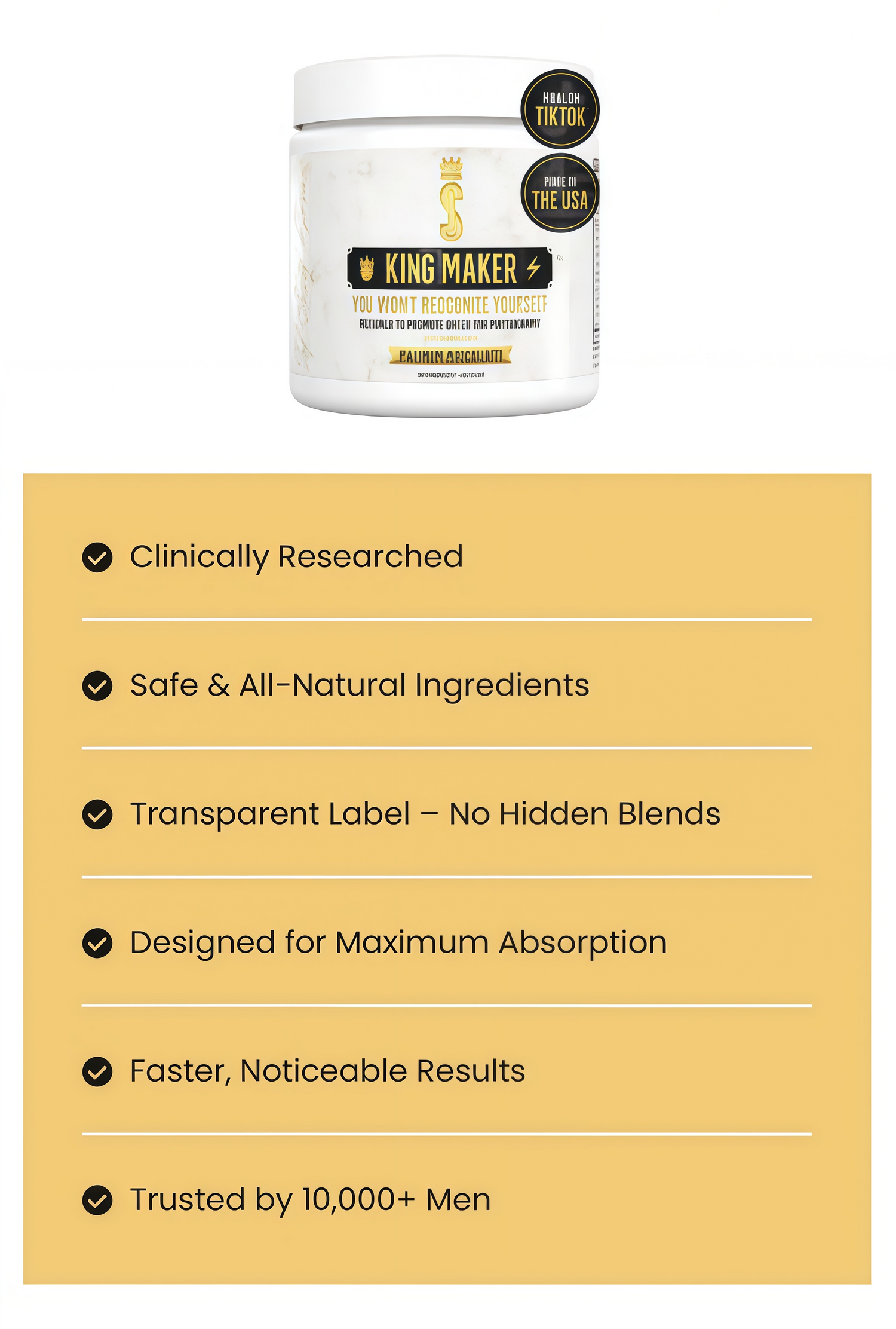 Trusted by 10,000+ men across the USA, King Maker delivers fast-acting and long-lasting results—helping you feel stronger, more energetic, and more confident every day.